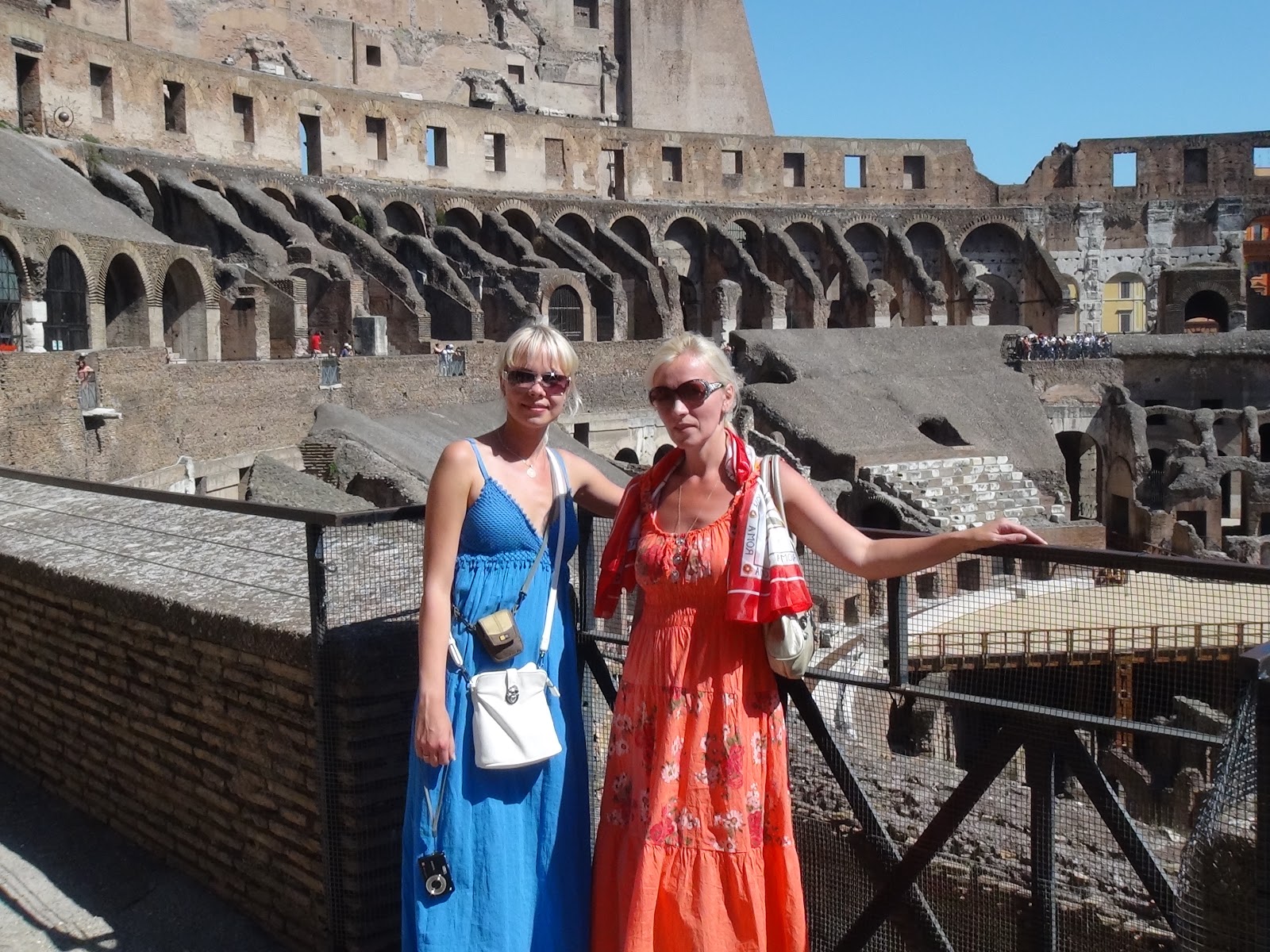 И вот, мы идём по Колизею. Колизей — самый большой из древнеримских амфитеатров, — один из знаменитых древних памятников древнего Рима и одно из самых примечательных сооружений в мире. Находится в Риме, в ложбине между Эсквилинским, Палатинским и Целиевским холмами, на том месте, где некогда был пруд, относившийся к «Золотому Дому» Нерона. Колизей первоначально назывался Амфитеатром Флавиев, потому что он был коллективным сооружением императоров династии Флавиев: Веспасиана, Тита и Домициана. Строительство велось на протяжении 5 лет, с 75-80 гг.