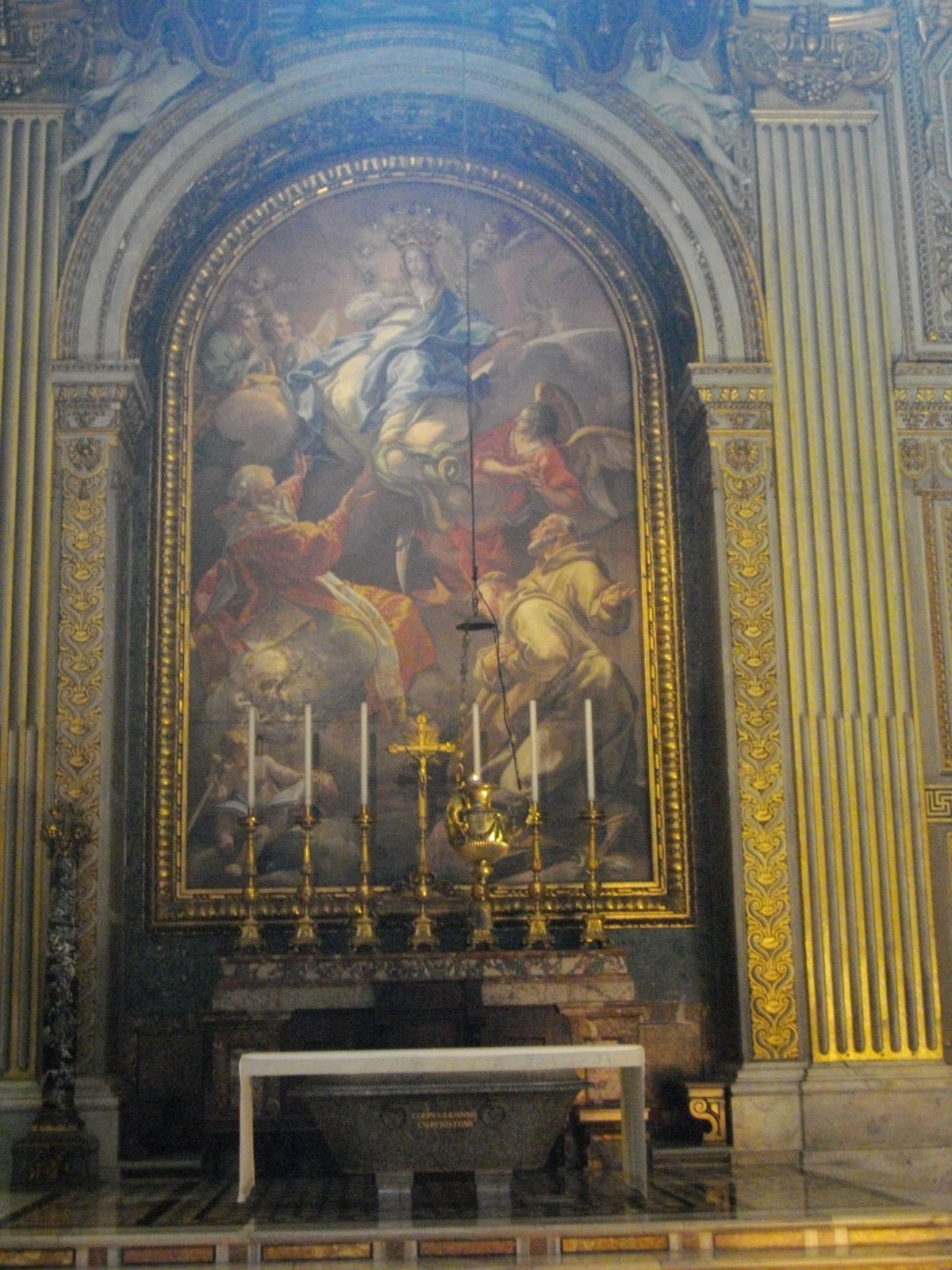 В центре собора возвышается алтарь с неугасимыми лампадами. Алтарь называется папским, поскольку служить перед ним мессу может только папа римский.