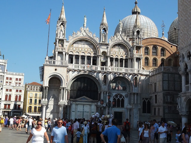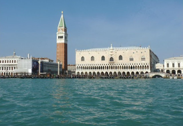 После прогулки по узким улочкам Венеции, выйдя к площади Сан-Марко захватывает дух от вида, открывшегося взору. Длина площади 175 метров. Сан-Марко имеет форму трапеции и поэтому в самой узкой ее части ширина 56 метров, а в восточной, более широкой 82 метра. А впереди Базилика святого Марка и дворец Дожей.