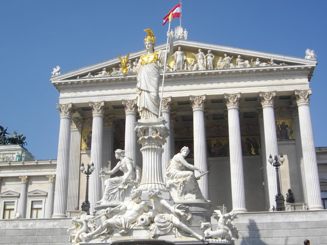 Здание парламента в Вене занимает площадь более тринадцати тысяч квадратных метров. Наиболее известной достопримечательностью здания является скульптурная композиция Афины-Паллады с фонтаном. Четыре полулежащие фигуры, расположенные спереди и сзади от пьедестала, являются аллегорическим представлением наиболее важных рек Австро-Венгерской монархии: Дуная, Инна, Эльбы и Влтавы. По сторонам пьедестала помещены купидоны на дельфинах. Женские статуи, расположенные выше, представляют законодательные и исполнительные органы власти.