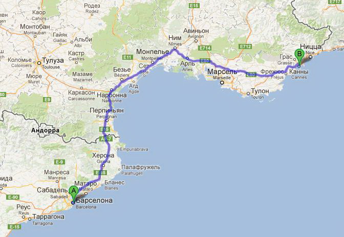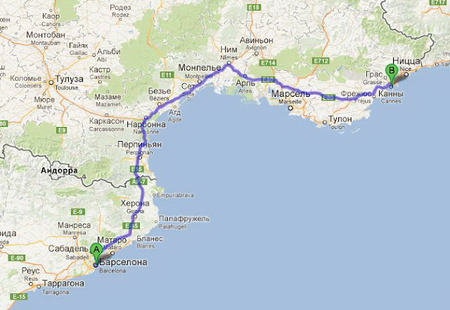 Мы покинули гостеприимную Испанию и движемся к лазурному побережью Франции. За плечами уже половина нашего вояжа по Европе. Наш маршрут на карте, проложенный навигатором, составит 638 км., по времени около 7 часов поездки.