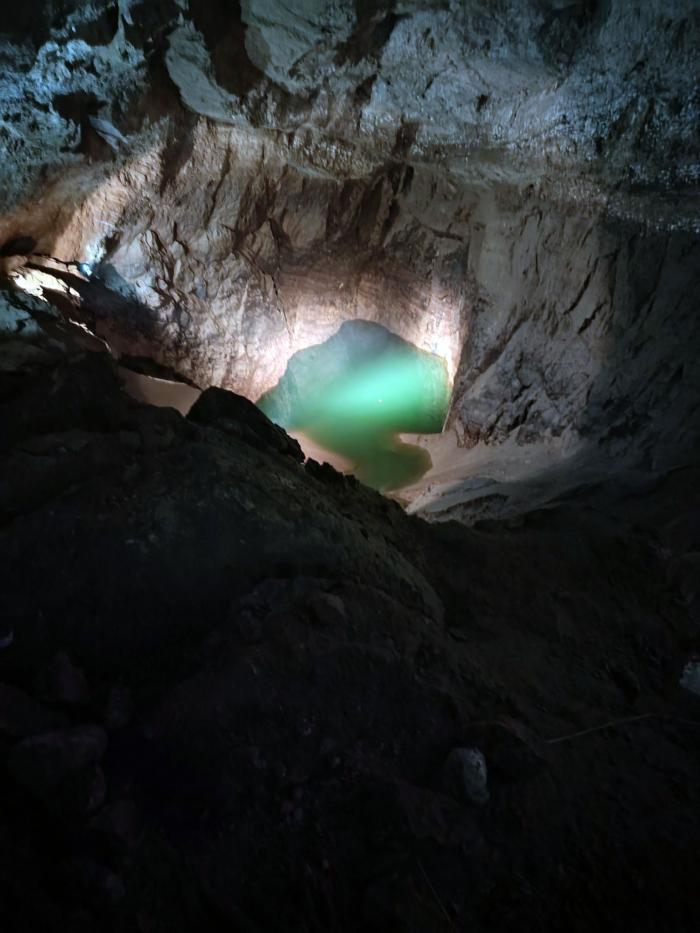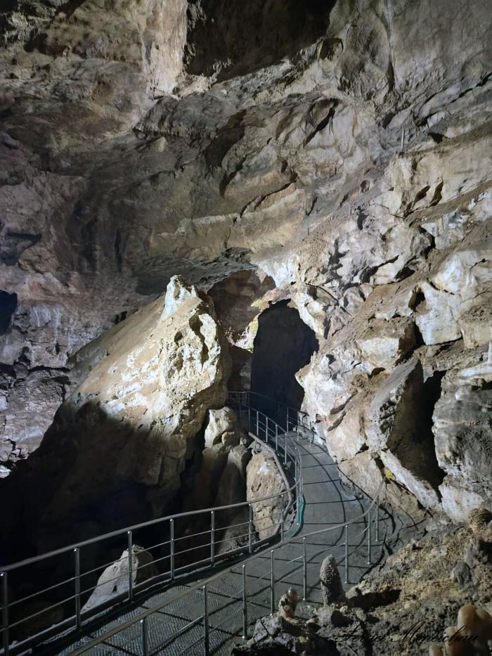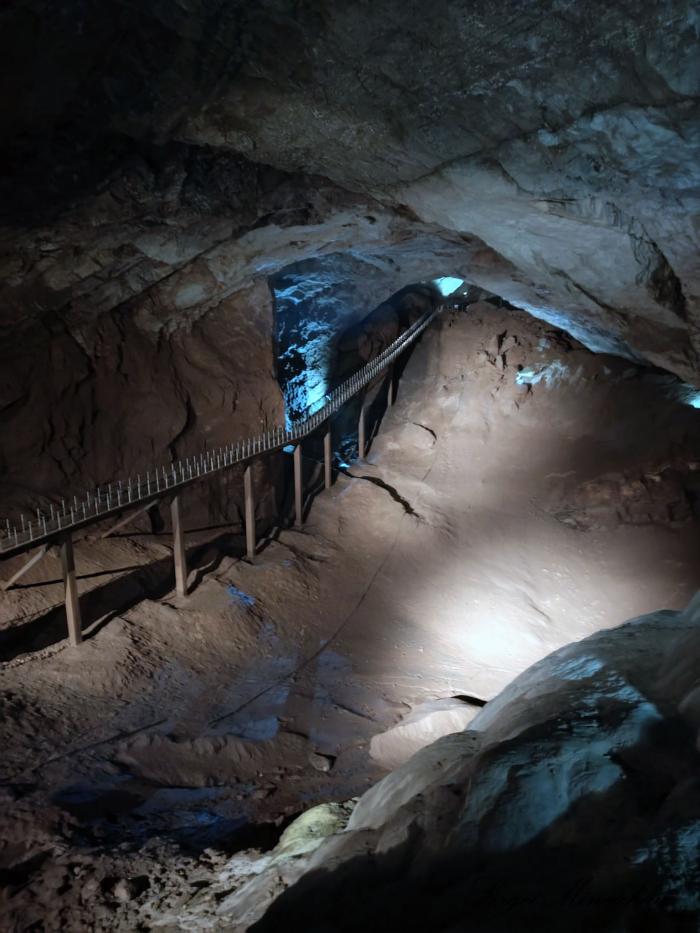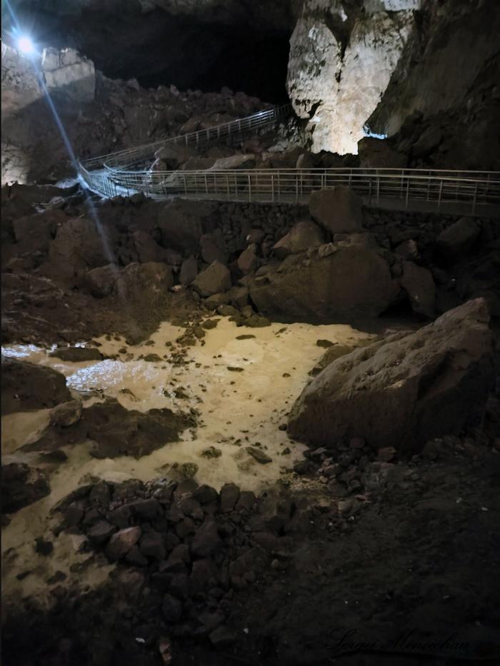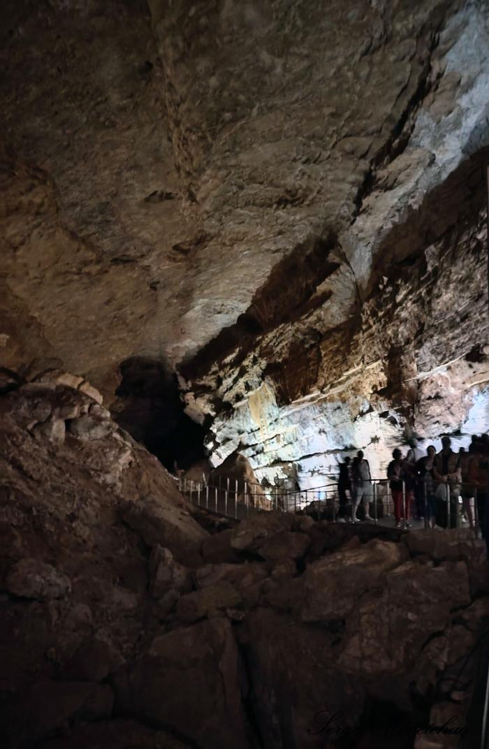 По второй версии – вход в магический портал. Но всё оказалось намного прозаичней. Это так называемые водоотводы, необходимые для того, чтобы этот зал пещеры не был полностью затоплен. Особое волнение вызвал рассказ экскурсовода, что вода поднималась выше уровня мостика, по которому мы шли.