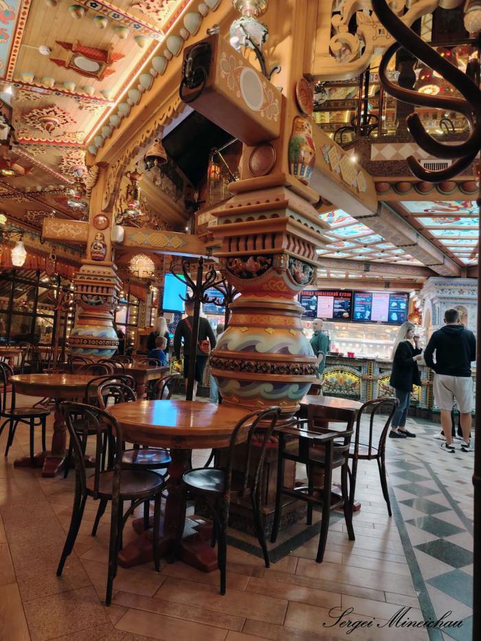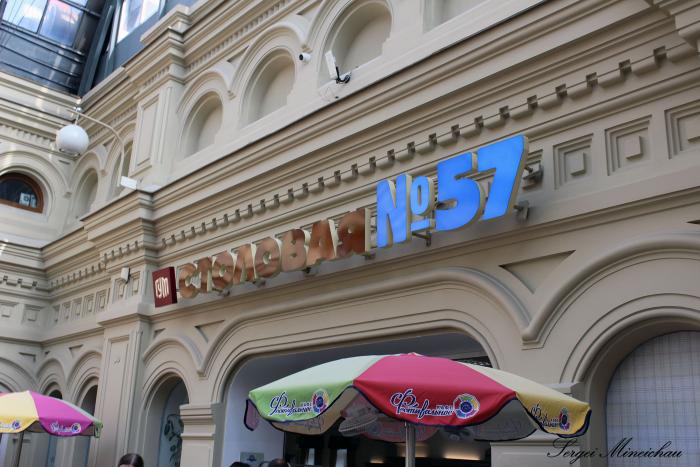 Время обедать. По карте находим ближайшую столовую, и отправляемся в сторону ГУМа. То, что столовая находится в самом ГУМе, мы не знали, и в растерянности остановились неподалёку. По звуку звенящей посуды, раздающейся с третьего этажа, внутренний навигатор уже поставил нашу следующую точку.