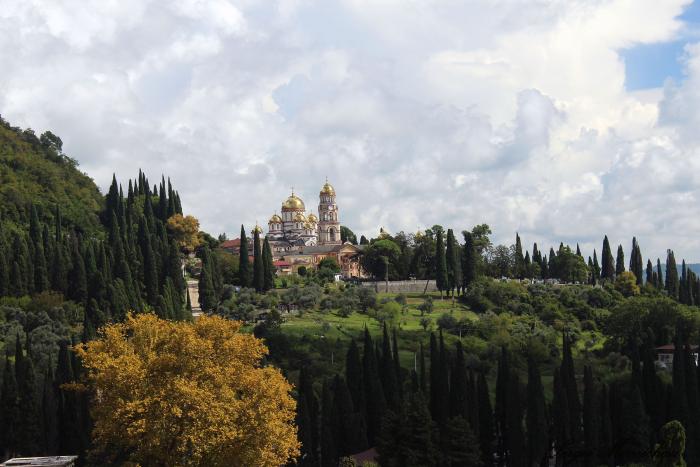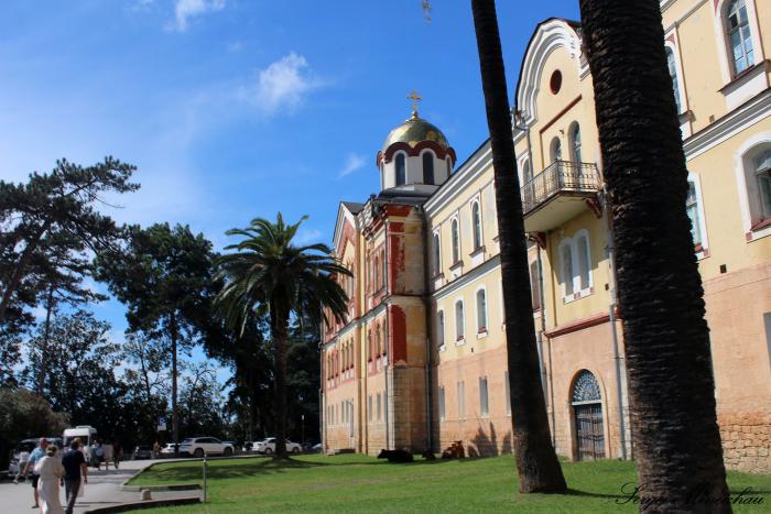 А сейчас мы направляемся в знаменитый Новоафонский Симоно-Кананитский монастырь, расположенный у подножья Афонской горы.