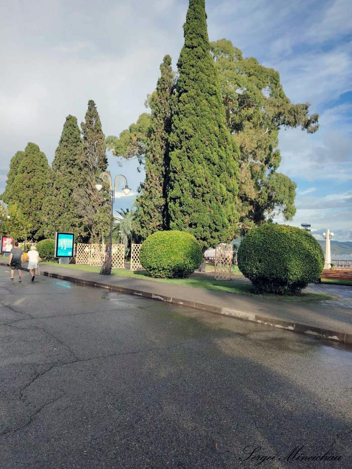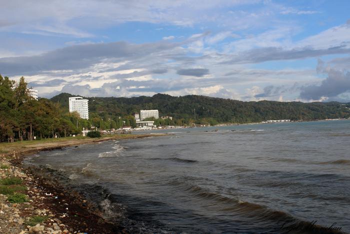 в котором мы так и не искупались, так как на следующий день начались дожди, а временами и очень сильные грозы. Но это и не входило в наши планы. Кстати на следующий день у нас была запланирована экскурсия на озеро Рица, которая так же сорвалась по этой причине. В горах + 12 и ливень. Надеемся, что послезавтра в Новом Афоне нашу пещеру не затопит. А пока мы выбираем промежутки хорошей погоды и наслаждаемся видами Сухума.