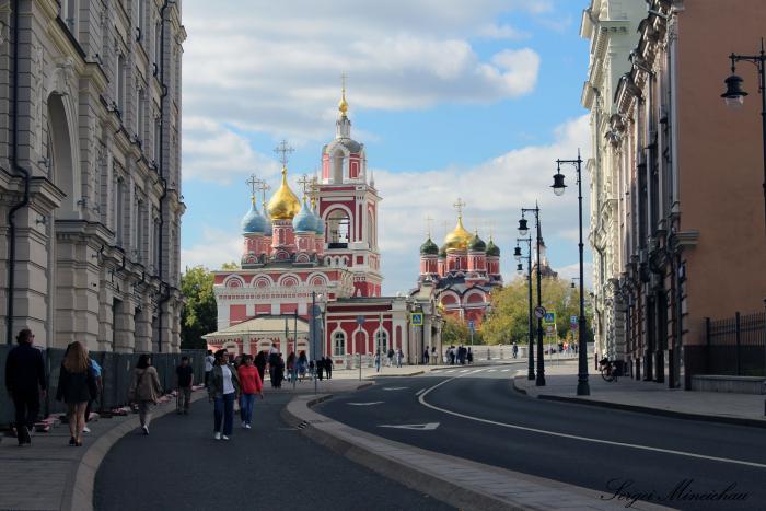 Практически вся улица Варварка со стороны парка Зарядье – сплошной уникальный памятник истории архитектуры. Здесь находится и колокольня Знаменского собора,