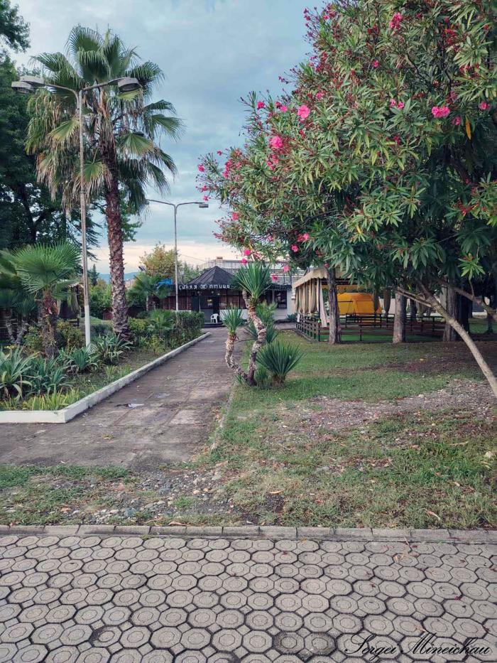 Сквер имени Иуа Когония – абхазского поэта. И, конечно же море,
