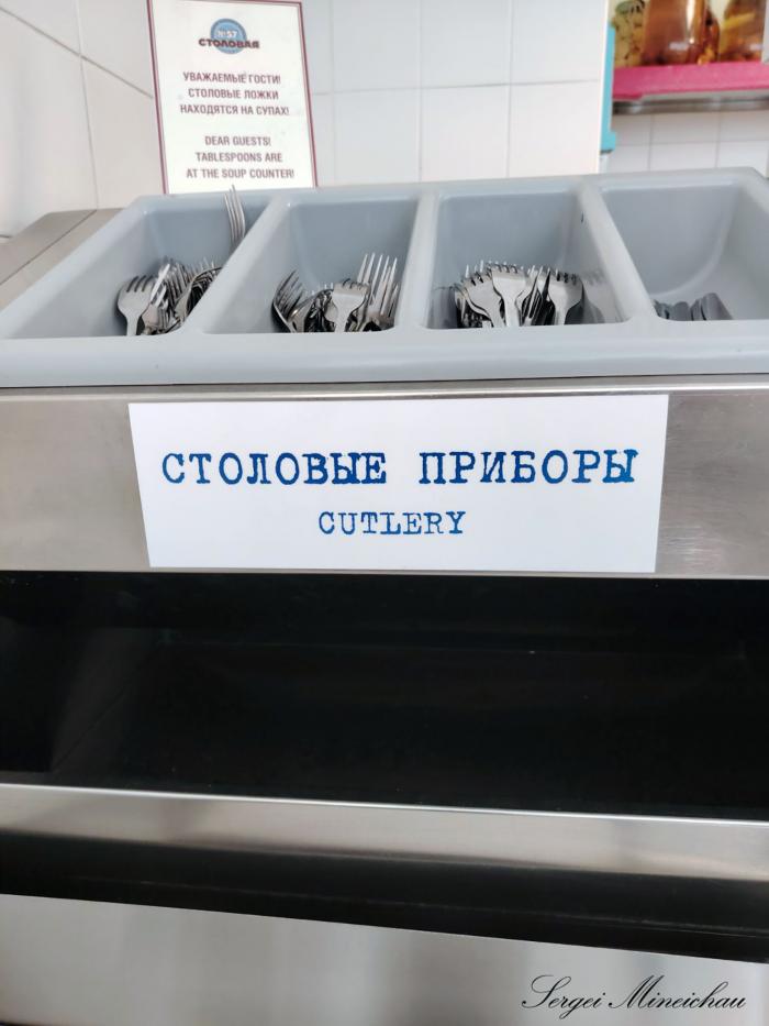 Да, это знаменитая «Столовая № 57» по ценам ресторана. Мы перемещаемся во времени и видим ту самую очередь, не такого уж и далёкого периода нашей истории. Работники столовой постарались передать атмосферу Советского Союза.