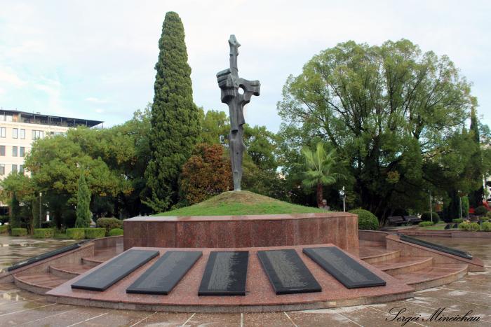 Меч, вонзённый в землю, означает конец войны. Отечественной войны народа Абхазии. Война унесла около 4 тысяч жизней, из них около половины – мирное население.