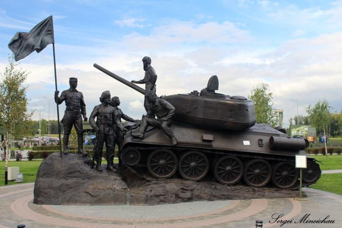 которую часто путают, называя её как памятник танкистам. На самом деле, в композиции запечатлён момент встречи югославских партизан с советскими танкистами.