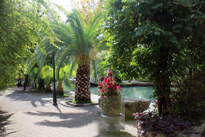 В центре сада находится замечательный светомузыкальный фонтан. Как приятно после вкусного ужина тихонько посидеть и полюбоваться на игру света, воды и симфонической музыки.