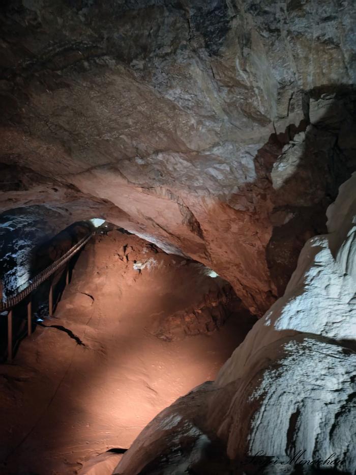 Размер пещеры поражает воображение. Мы выглядим на её фоне маленькими гномиками, которые идут по своим делам.