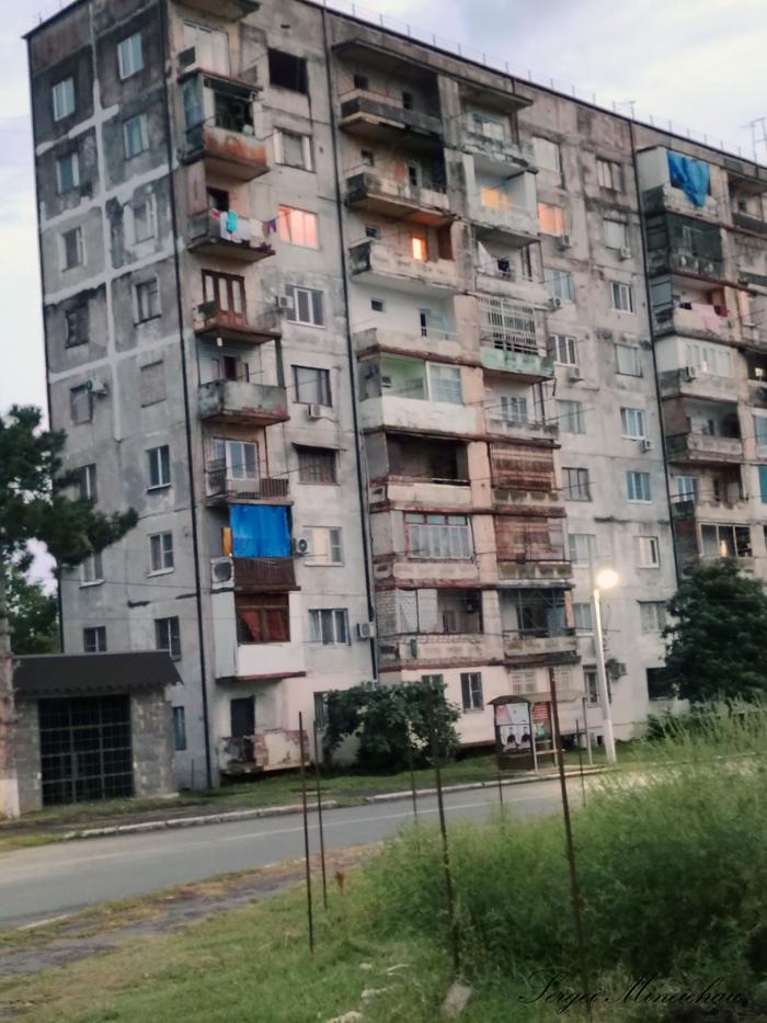 Поезд идёт строго по расписанию. Без приключений мы добираемся до Сухума, где нас уже встречают и везут на квартиру в многоэтажном доме в Новом районе. Южный воздух пьянит и уже хочется поскорее увидеть море. Но до моря надо ещё добраться. Теперь уже самостоятельно. Мы идём около домов с пустыми глазницами.