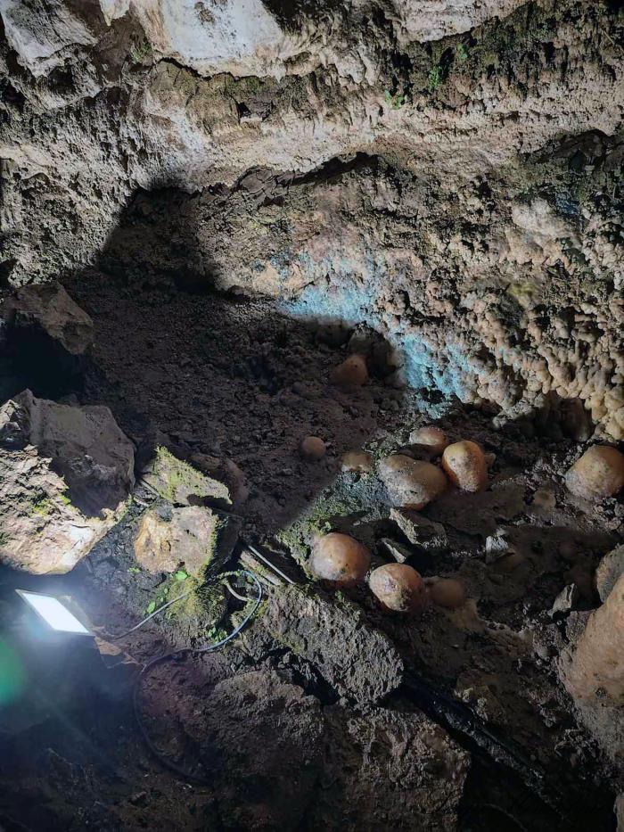 Нет тех мощных прожекторов, которые, кстати, оказывали негативное влияние на состояние пещеры. Под влиянием тепла и света, начинала прорастать растительность, которая меняла флору и фауну пещеры. Вот пример того, как небольшая подсветка вызывает рост зелёной растительности.
