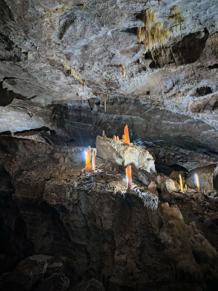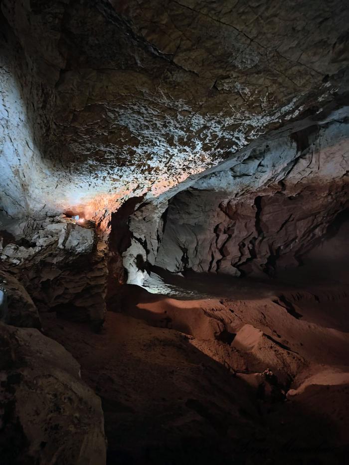 Однако нас ждал и приятный сюрприз. Благодаря современным технологиям, в пещере присутствует приглушённый красивый точечный свет.