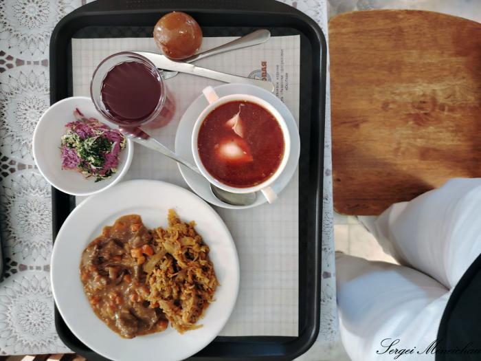 Мы заказали себе селёдку под шубой, борщ, гуляш с тушёной капустой,