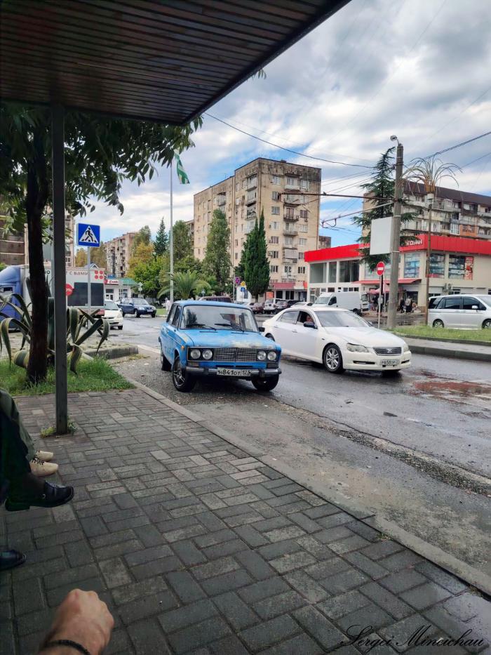 Именно оттуда мы начинали все наши путешествия в Сухуми. Кстати, в Абхазии, очень много праворульных машин. Я специально стал считать, сколько каких машин проедет рядом.