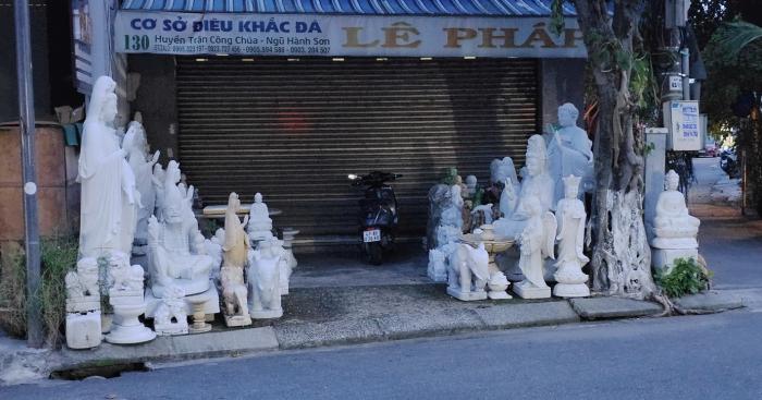 У самого подножия Мраморных гор расположены две деревни резчиков по камню. Наиболее известной является деревня Нон Нуок (Non Nuoc), мастера которой специализируются на создании изысканных изделий из мрамора, включая парковые скульптуры и изображения Будды для храмов и монастырей Юго-Восточной Азии. В деревне вас встретит множество лавок с бесчисленным количеством всевозможных фигурок, скульптур, украшений и даже посуды из мрамора. Говорят, что цены более чем приемлемы, но надо торговаться, причем иногда очень сильно. Если кто-то совершает серьезную покупку, то прямо тут же можно оформить ее доставку по морю в любую точку мира.