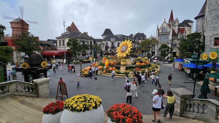 Больше всего меня впечатлил католический собор на главной площади в Ba Na Hills. А ещё удивила «выставка достижений» местного сельского хозяйства и море цветов вокруг. Во всех уголках французской деревни цветов так много (причем не только азиатских, но и привычных для нас тюльпанов и гиацинтов), и пахнут они столь потрясающе, что возникает ощущение гигантской оранжереи под открытым небом…