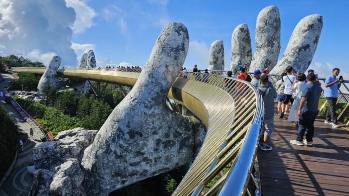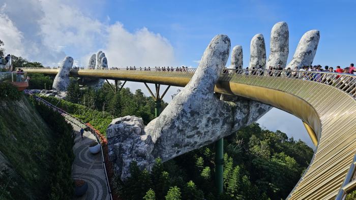 Сколько бы ни было в Дананге туристов из разных стран мира, им ни за что не переплюнуть китайцев, которыми в разгар дня забиты местные достопримечательности. Важно было не попасть в поток китайцев на Золотом мосту в Ba Na Hills; желающих пройтись по знаменитому мосту и сфотографироваться столько, что тут почти всегда толкучка. Все просто оккупировано китайскими туристами, которые стараются всюду успеть. Ей-богу, рядом с ними невольно начинаешь чувствовать себя таким же «слегка сумасшедшим»…