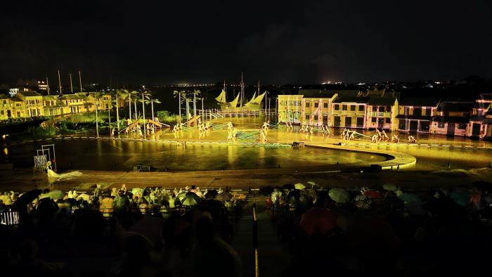 В Хойане в первые же минуты вечернего представления хлынул такой «вселенский ливень», что не помогли и оперативно розданные зрителям дождевики; персонал об этом, как оказалось, позаботился заранее. Большинство промокших людей подалось под навес, прикрывавший от потоков воды только часть зрительских мест — естественно, самых дорогих по стоимости (цена билета зависит от места размещения).