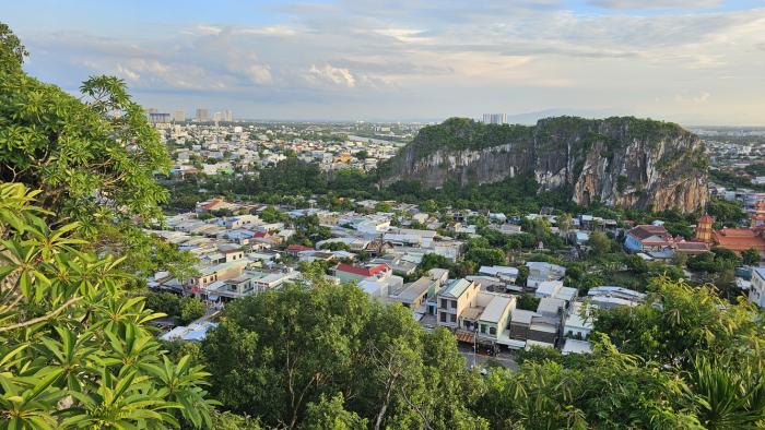 Природный комплекс Мраморных гор — один из наиболее впечатляющих ландшафтов центрального Вьетнама. Это своего рода кластер из нескольких вершин, с хорошо различимыми формами и высотой. Раньше, когда все вокруг было покрыто водой, это были острова, образованные из скальной породы. Позднее, когда вода ушла, здесь остались естественные пещеры, внутри и вокруг которых были построены буддийские святилища и храмы. Называют горы в честь пяти основных элементов мироздания, согласно фундаментальной практики фэн-шуй: Гора металла, Гора дерева, Гора воды, Гора огня, Гора земли.