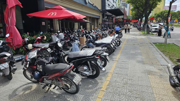 В непрерывно текущем потоке автомобилей и мотобайков тут так же, как и в Санье, снуют пешеходы, каким-то таинственным образом не попадая под них. Правила дорожного движения Вьетнама (как, собственно, и Китая) во многом остались для меня загадкой. Движение на дорогах очень хаотичное, правила дорожного движения мало кто соблюдает, а трафик в городе главным образом создают мотоциклы. С парковкой особых проблем нет — у пляжей, отелей и торговых центров все свободно оставляют свою технику. Правда, пешеходу пройти по улице из-за этого бывает непросто, часто приходится передвигаться прямо по проезжей части.