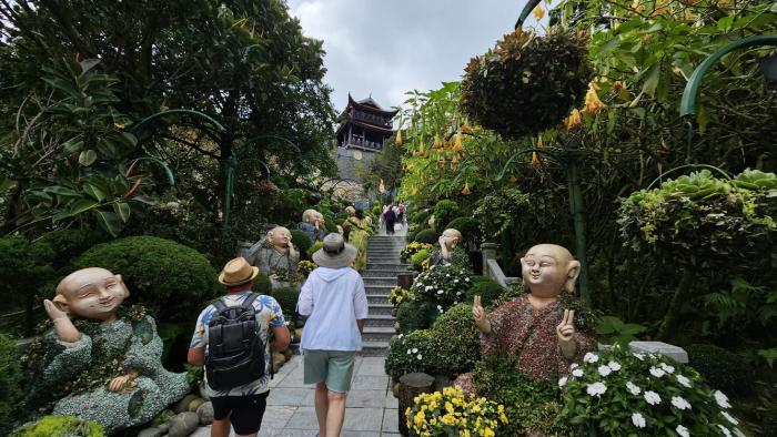 Чуть в стороне от французской деревни находится небольшой, но необыкновенно живописный уголок с пагодами. Людей в этой части парка значительно меньше, а соответственно, тут тише и спокойнее. Подняться к пагодам стоит хотя бы ради видов на окружающую местность, которые тут открываются. Создается ощущение, что ты паришь над бесконечными облаками, сквозь которые местами проглядывают вьетнамские джунгли…