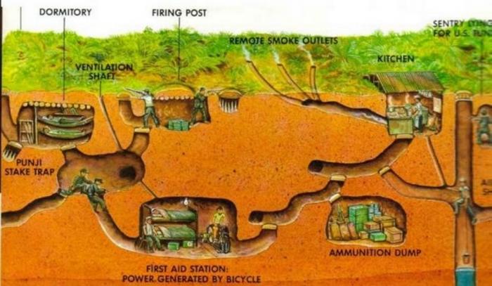 Строительство туннелей началось еще во время войны против французов, но темпы их строительства резко возросли с прибытием американцев. Те поначалу явно недооценивали сложность поиска и нейтрализации туннелей. И они действительно доставили кучу хлопот врагам Вьетконга на территории Южного Вьетнама.