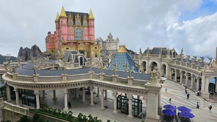 В принципе, почти все здания в Ba Na Hills – это новострой и бутафория. Но как шикарно все задумано и сделано! Понимаешь умом, что построены здешние «французские» замки все же вьетнамцами; вблизи, при пристальном изучении, можно разглядеть всякие недочеты. Но если созерцать отстраненно и как бы чуть со стороны — всё действительно выглядит волшебно, красиво и атмосферно.
