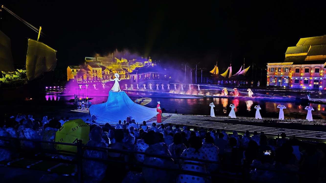 В Хойане в первые же минуты вечернего представления хлынул такой «вселенский ливень», что не помогли и оперативно розданные зрителям дождевики; персонал об этом, как оказалось, позаботился заранее. Большинство промокших людей подалось под навес, прикрывавший от потоков воды только часть зрительских мест — естественно, самых дорогих по стоимости (цена билета зависит от места размещения).