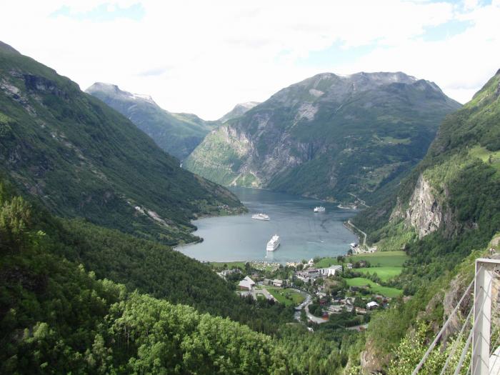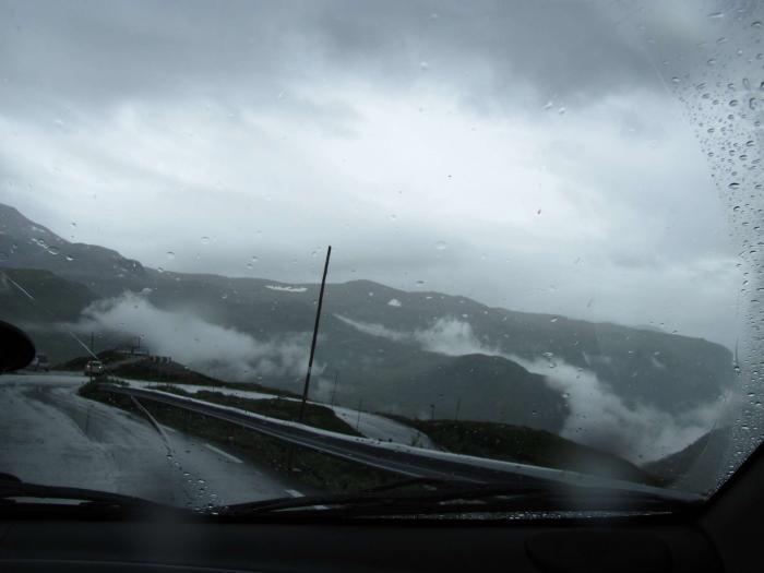 20.07.10 Встали в 9, в 10:30 уже отъезжаем. В 11 доехали до Лома и свернули на 55 туристическую дорогу по совету пары из Тулы. Нам обещали что она красивая. Виды действительно очень красивые, но идет дождь. Не особо хочется выходить, приходиться щелкать из машины. За бортом все лишь 7 градусов, 1000 над уровнем моря. Где-то в 13:30 спустились к фьорду, там была замечательная стоянка с купанием, я хотела встать на обед и искупаться, несмотря на дождь. Но вся семья оказалась против. Поехали дальше, и в 14 часов приехали в Songdale. Поискали какой-нибудь банк, чтобы поменять деньги. Не нашли :-((. Больших магазинов тоже нет. Поехали дальше, увидели торговый центр, там был COOP Market. Подкупили продуктов. Потом тоннель привел нас прямо на паром. Заплатили 117 нок. Начала глючить основная карточка, видимо отсырела… Причем не проходила она только на паромах. Везде дальше в магазинах все было нормально. Вывод – всегда надо иметь запасную! Дождь все не прекращается…. Без подготовки (хотя и знали о нем!) влетели в самый длинный тоннель, 24 км!!! Ехали 20 минут по нему. Кода подумаешь какая гора над тобой! Людям с клаустрофобией лучше не заезжать… Но оказалось что это не все. Когда ты выезжаешь, вздохнув с облегчением, через минуту ты въезжаешь в 11-километровый тоннель! Выехав из него, поняли что обеда нам не видать, так как дождь все не прекращался…