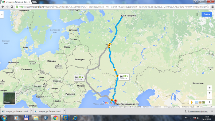 Расстояние Вельск — Сочи: 2352 км; Время пути: 35:38