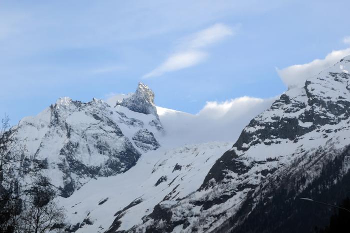 Первый этап поездки был завершен. И тут же начался второй. Мы покинули Ставрополье и оказались в Карачаево-Черкессии. И встретила она нас сказочной дорогой среди гор. Сперва мы просто запетляли среди них, причем очень разных, где-то каменистых, где-то покрытых травой разной степени густоты и зелености. Хотелось ехать помедленнее, чтобы дорога не заканчивалась. За бортом заметно похолодало. Очень близко стали появляться горы, покрытые снегом. И вот тут мы вылетели на перевал. Оказались на открытом месте, и прямо перед нами на юге сверкает снегом Главный Кавказский Хребет.