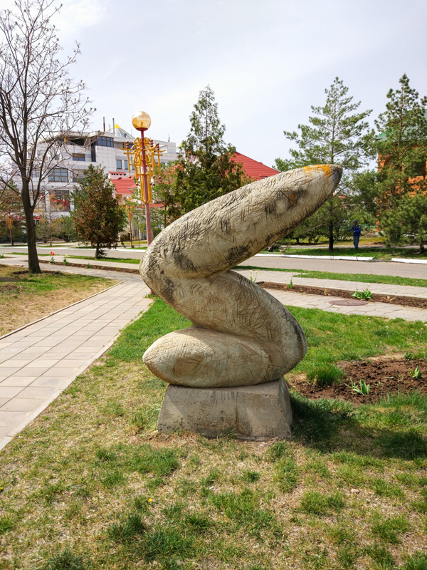 Утром едем в Элисту, сначала в город шахмат, Нью-Васюки, на бульваре перед Chess-City есть памятник Остапу Бендеру, на территории самого города — элементы современного искусства, от которого я далёк, вот, например, композиция …