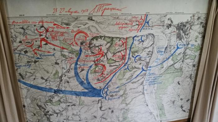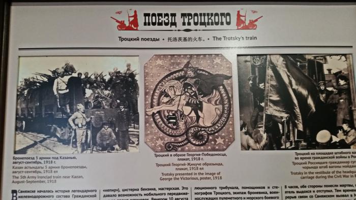 Небольшой, но весьма интересный музей гражданской войны в Свияжске дает возможность тем, кто интересуется данным периодом в истории России, погрузиться в события тех лет. И даже «побывать» в рабочем кабинете товарища Троцкого, где он планировал боевые действия по взятию Казани в начале сентября 1918 года. Кстати, дамочка на заднем плане у окна – это, надо думать, журналистка Лариса Рейснер, которая была непосредственной участницей тех событий и которую Троцкий, по словам партийных сплетников, «наградил постелью».