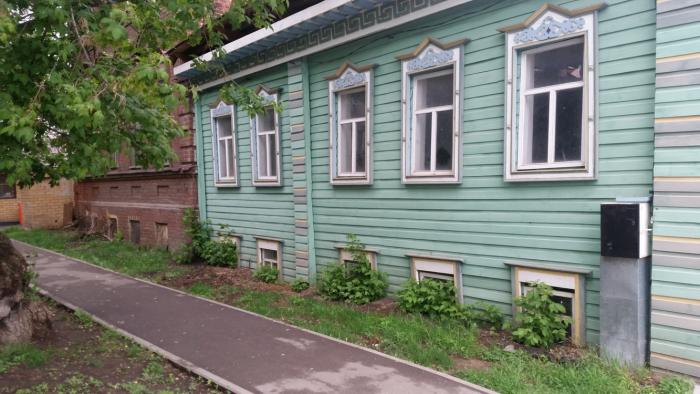Я немного поснимал старые дома в центре Казани. Все они либо основательно засыпаны грунтом на целый этаж (где более, где менее), либо частично откопаны — чтобы можно было зайти в двери, не склоняясь в три погибели. Кое-где подземные этажи даже облагородили и получились своего рода подвальные помещения с приямками; но настоящие подвалы у этих домов располагаются еще глубже.