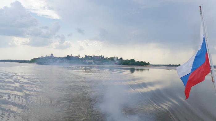 По Волге, собственно, мы и прибыли на остров из Казани. Для меня, как для человека, хорошо знакомого с последовательностью исторических событий в этих местах, двухчасовое путешествие по реке не менее занимательно, чем пребывание в самом Свияжске.