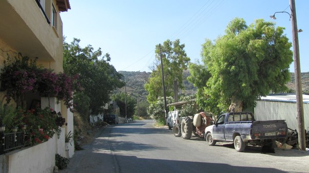 Завтрак. Солнце печет уже с утра. Все по местам. Сегодня путь держим на юг острова, через Ираклион. Дорога уже проще, привычнее, да и путь в основном по трассе. Быстро добираемся до окрестностей Ираклиона под местную FM станцию (смесь евродэнса и национальных мелодий). В Ираклион не заезжаем, а уходим по развязке и указателям на юг, на Agia Varvara. Едем мы на поиски пещеры Сфедони, рядом с местечком Zoniana. Но делаем ошибку, спутав нужное нам место с местечком Tzaniana, которое ниже Agia Varvara. Просто немного ступили, бывает. Пока еще не осознав свою ошибку, пересекаем Agia Varvara и въезжаем по живописному очередному серпантину в деревню Панассос.