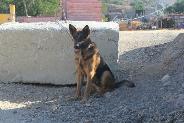Нас встретила тишина, ветер и немецкая овчарка на цепи. Животина оказалась крайне добродушной, с удовольствием трескала наши печенья и позировала на камеру.