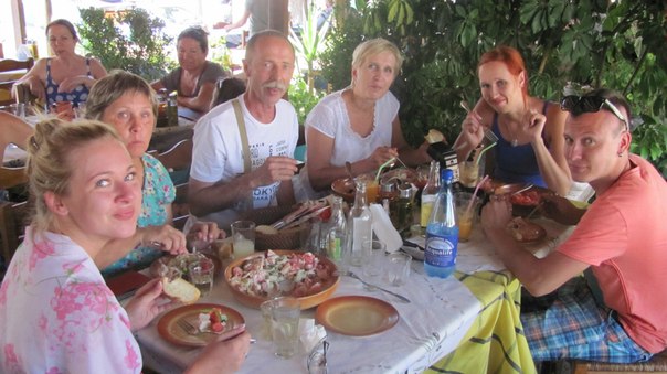 За соседним столом человек десять греков – это хороший знак. Там, где много местных, плохо не бывает. Заказываем еду, на этот раз порции просто гигантские!