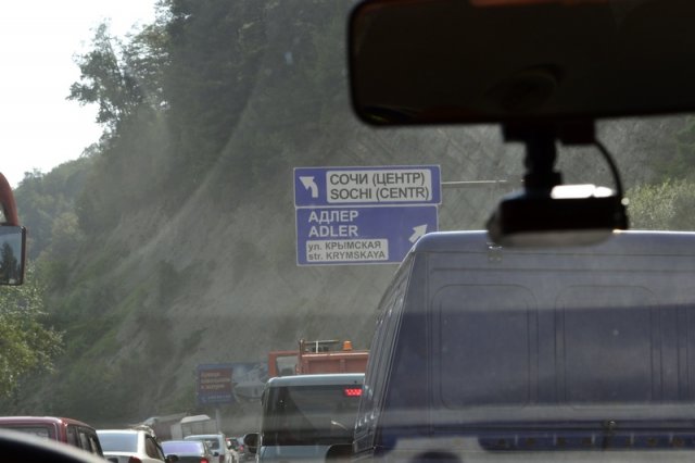 Дело в том, что сейчас Адлер – это огромная стройка. К зимней Олимпиаде-2014 проводится полная реконструкция дорог Адлера. Построено огромное количество новых объектов инфраструктуры, дорожные развязки, жд и авиа вокзалы. Сталь, стекло и бетон.