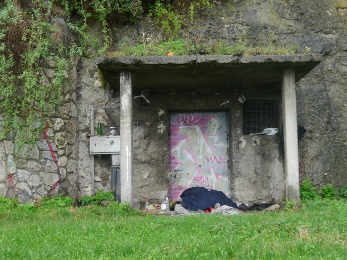 Ну что делать, идём снова к Будайской крепости, по пути встречаем жилище бомжа под горой,