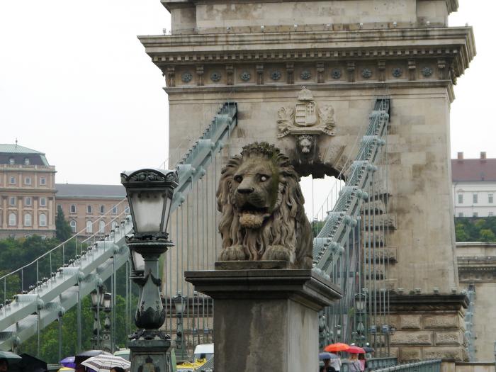 По Цепному мосту перешли в Буду. Кстати, на мосту увидели знаменитых «безъязычных» львов.