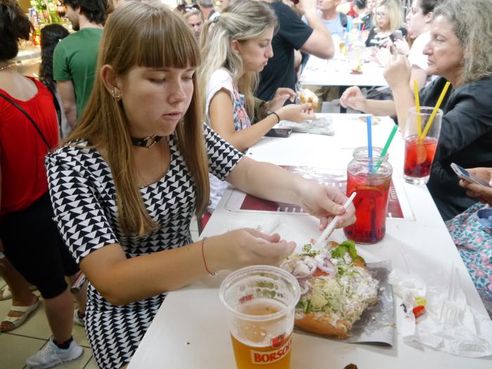 Вот и всё. Добираемся до отеля и идём ужинать в Gastland Bisztró — Oktogon. От нас всего одна остановка. Бистро сделано по типу шведского стола — платишь примерно по 300 рублей с носа и кушай что хочешь, но напитки отдельно.