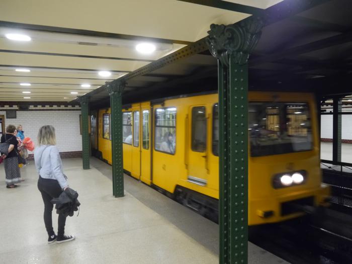 Первым делом покупаем групповой проездной на 24 часа (Budapest 24-hour group travelcard) за 3300 форинтов (самый выгодный вариант, можно даже на речных трамвайчиках), и спускаемся в метро на линию М1. Линия старейшая, открыта в 1896, и расположена так низко, что проспект Андраши вздрагивает под проходящими поездами.