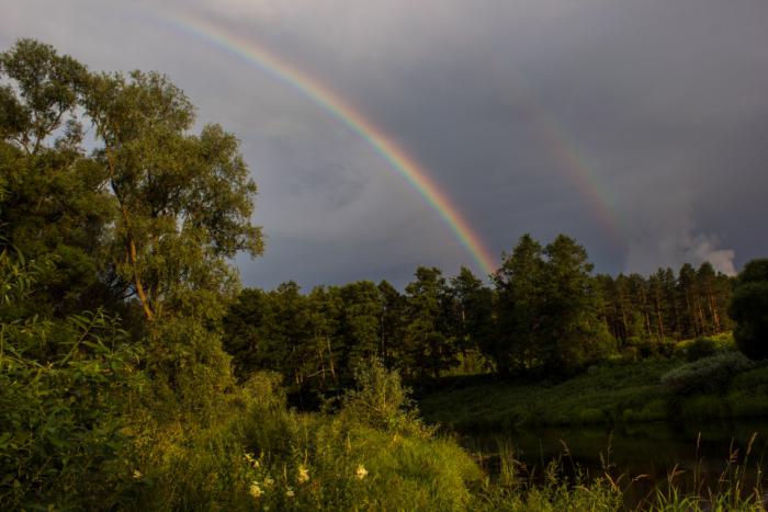 Не успели отъехать от Дона как попали в полосу обложного дождя. Тучи серым одеялом закрыли небо практически на целый день. И только уже ближе к Калуге небо разорвало и показалось солнце. Доехали до места планируемой стоянки на реке Ресса. Предполагали переночевать в месте впадения Рессы в Угру. От асфальта где-то 2 км грунтовой дороги. В сухую погоду дорога была бы даже очень ничего, но мы попали после дождей и чем дальше удалялись от асфальта, тем больше становились лужи и менее проходимой дорога. Где-то на половине пути нас остановила глубокая колея. Пришлось вернуться на асфальт. Попробовали по проехать по другой дороге в итоге выехали на небольшую полянку прямо на берегу реки. Затаборились, приготовили ужин, накупались в речке и даже чуть порыбалили. И вот когда уже все расслабились за кружкой вечернего чая из-за леса выползли черные «многообещающие» тучи. Т.к. спуск к поляне представлял собой резкий малонакатанный склон, то любой продолжительный дождь отрезал бы пути к отступлению. Пришлось ретироваться в ускоренном темпе и вовремя. Не успели мы выехать на асфальт, как обрушился сильнейший ливень. Хоть и дождь согнал нас с места, но скитаться долго не пришлось, через пару десятков километров нашли отличную поляну в лесу, где и заночевали.