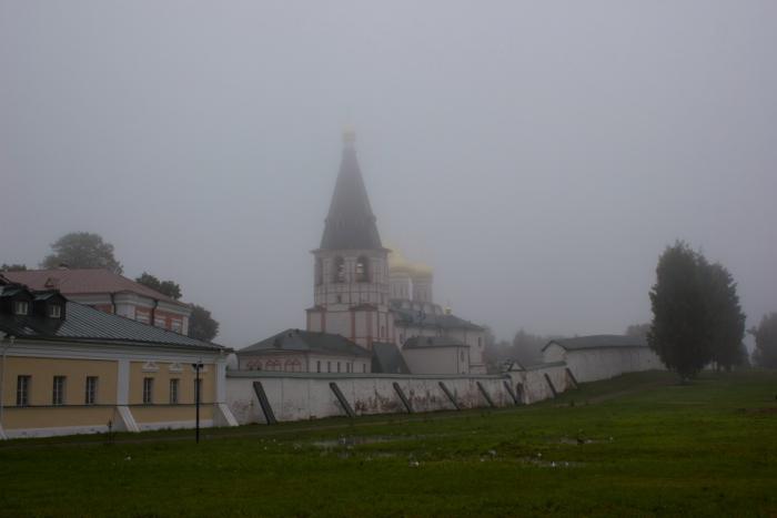 Двигаемся дальше. Ранним утром заехали в Иверский монастырь, расположенный на одном из островов озера Валдай. Дорога в окружении огромных елей, а потом и сам монастырь окутанный утренним туманом – это доложу я вам что-то фантастическое.