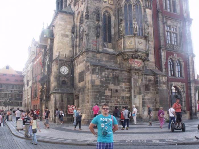 На следующей фотографии справа можно видеть мужчину на двухколесном сооружении. В Праге такие (я не знаю как они называются) дают на прокат. А в Берлине, кстати, мы видели как мужчины в костюмах с утра на работу так ехали, очень интересное зрелище: