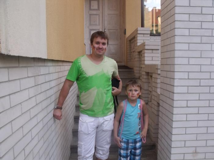 В этот день был полуфинал: Италия-Германия. Мой муж, как ярый любитель футбола, не мог пропустить данное действие. Было решено идти в фанзону (вернее не совсем в фанзону, а в близлежащий злачный мест), но обязательно с разрисованными лицами. Я решила болеть за Италию, муж — за Германию, а ребенок решил болеть за того, кто победит =)